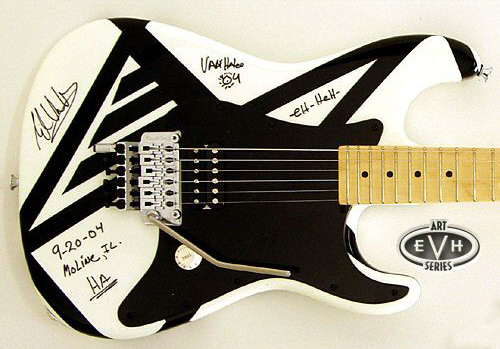 Like all guitars auctioned at eBay (this one reached $15101), it's personally designed and autographed by EVH himself.