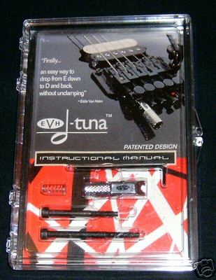 This drop-D guitar tuner device is a revolutionary new patented device that lets you to drop from E to D and back, in an instant. EVH has already been using it on his guitars for five years. It's simple to use and it works.