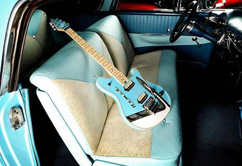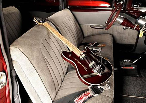 Red guitar in red car