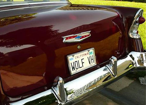 The car has the well known "Wolf VH" license plate and features a V8 454ci engine, maroon colour and dark grey interior. The car has been owned by Edward Van Halen since 1991.