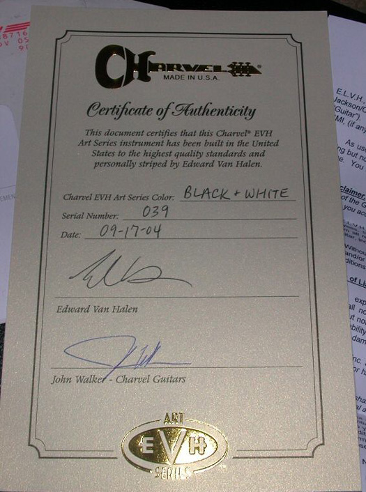 Like all guitars auctioned at eBay, it's personally designed and autographed by EVH himself.